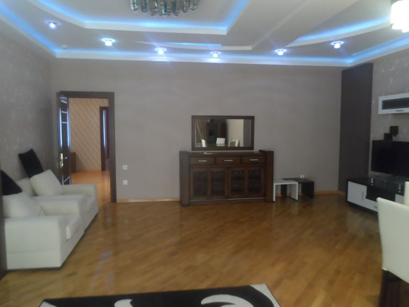 Torqovaya ərazisində, İSR Plazanın arxasında, yeni tikili binada, 3 otaqlı mənzil, əla təmirli, bütün mebel və avadanlığı ilə, 2 san\q, şəhərə mənzərə. 24 saat mühafizə. Qiymət - 2000 AZN ; За ИСР Плазой, в Центре города, нов-ка, 3-х комнатная квартира, 2 сан\уз, евро\\рем., со всеми мебелью и удобствами, лифт, 24 ч. охраны. Цена - 2000 АЗН; Behind ISR Plaza, in city center, new building, 3 rooms, 2 bedrooms apartment, 2 bathrooms, euro renovation, with all furniture and equipment, elevator, 24 hours security. Rental is 2000 AZN
