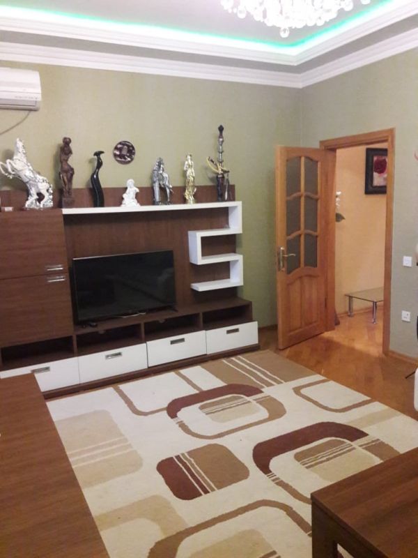 Mərkəzdə, Xarici İşlər Nazirliyinin arxasında, yeni tikili binada, 3 otaqlı mənzil+ mətbəx studiya, 2 yataq otağı, 2 san\q, euro təmirli, bütün mebel və avadanlığı ilə, lift, 24 saat mühafizə....