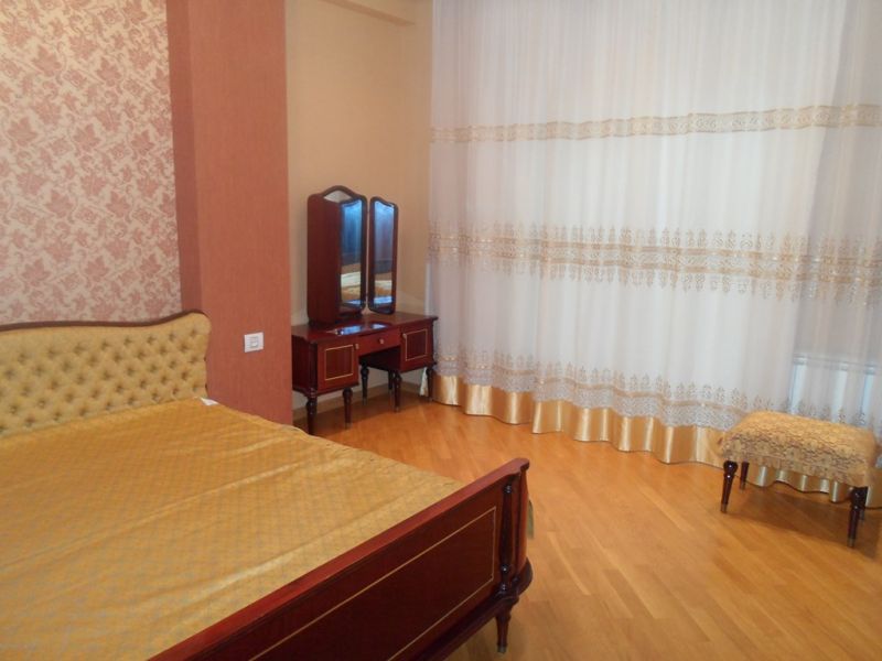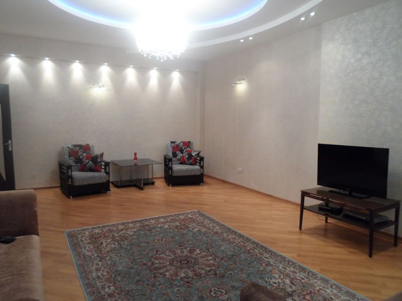 Mərkəzdə, Xarici İşlər Nazirliyinin arxasında, yeni tikili binada, 3 otaqlı mənzil+ mətbəx studiya, 2 yataq otağı, 2 san\q, euro təmirli, bütün mebel və avadanlığı ilə, lift, 24 saat mühafizə....