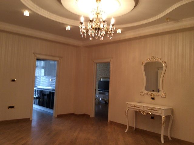 Mərkəzdə, 28 May küç., "Orient Palace"-də, 3 otaqlı mənzil, 2 yataq otağı, orta mərt\21, sahəsi 195 kv.m., dizayn təmir, 2 san\q, bütün mebel və avaadanlığı ilə, mərkəzi i\s, kupçi kağızı vardır....