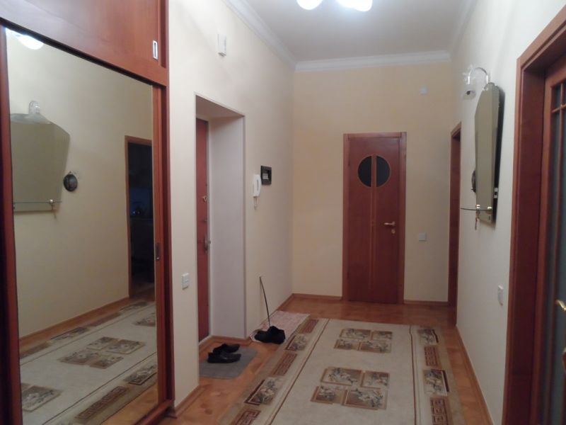 Mərkəzdə, 28 May küç., "Orient Palace"-də, 3 otaqlı mənzil, 2 yataq otağı, orta mərt\21, sahəsi 195 kv.m., dizayn təmir, 2 san\q, bütün mebel və avaadanlığı ilə, mərkəzi i\s, kupçi kağızı vardır....